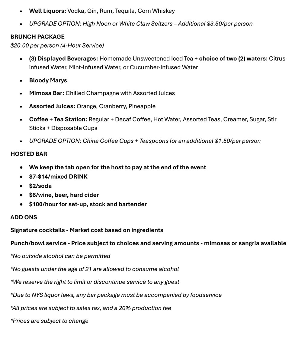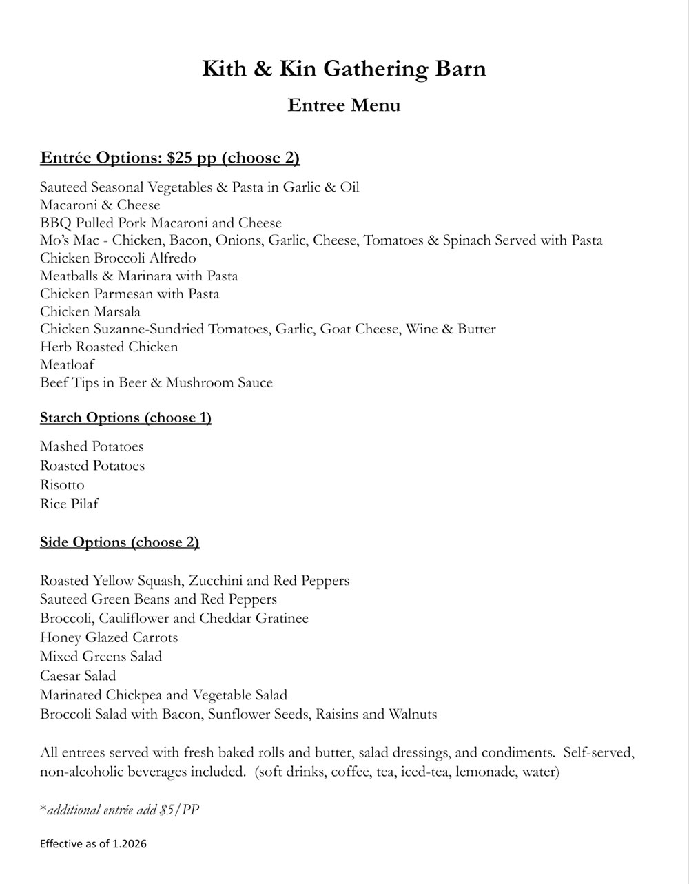 Barn Menu PDF Barn Bar PDF Service Fees PDF