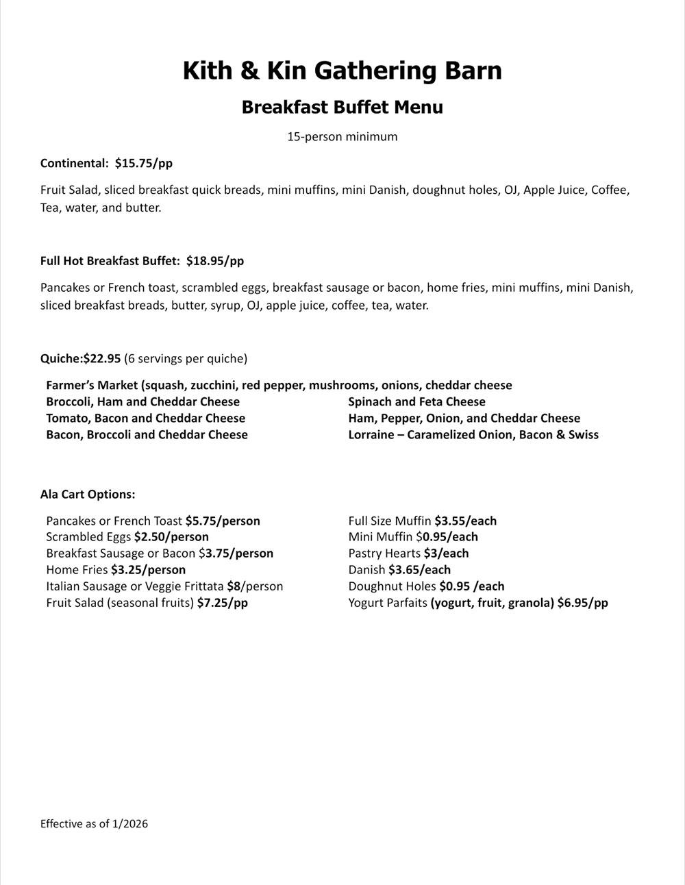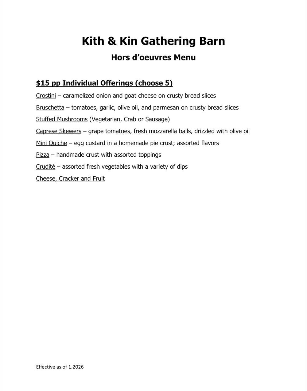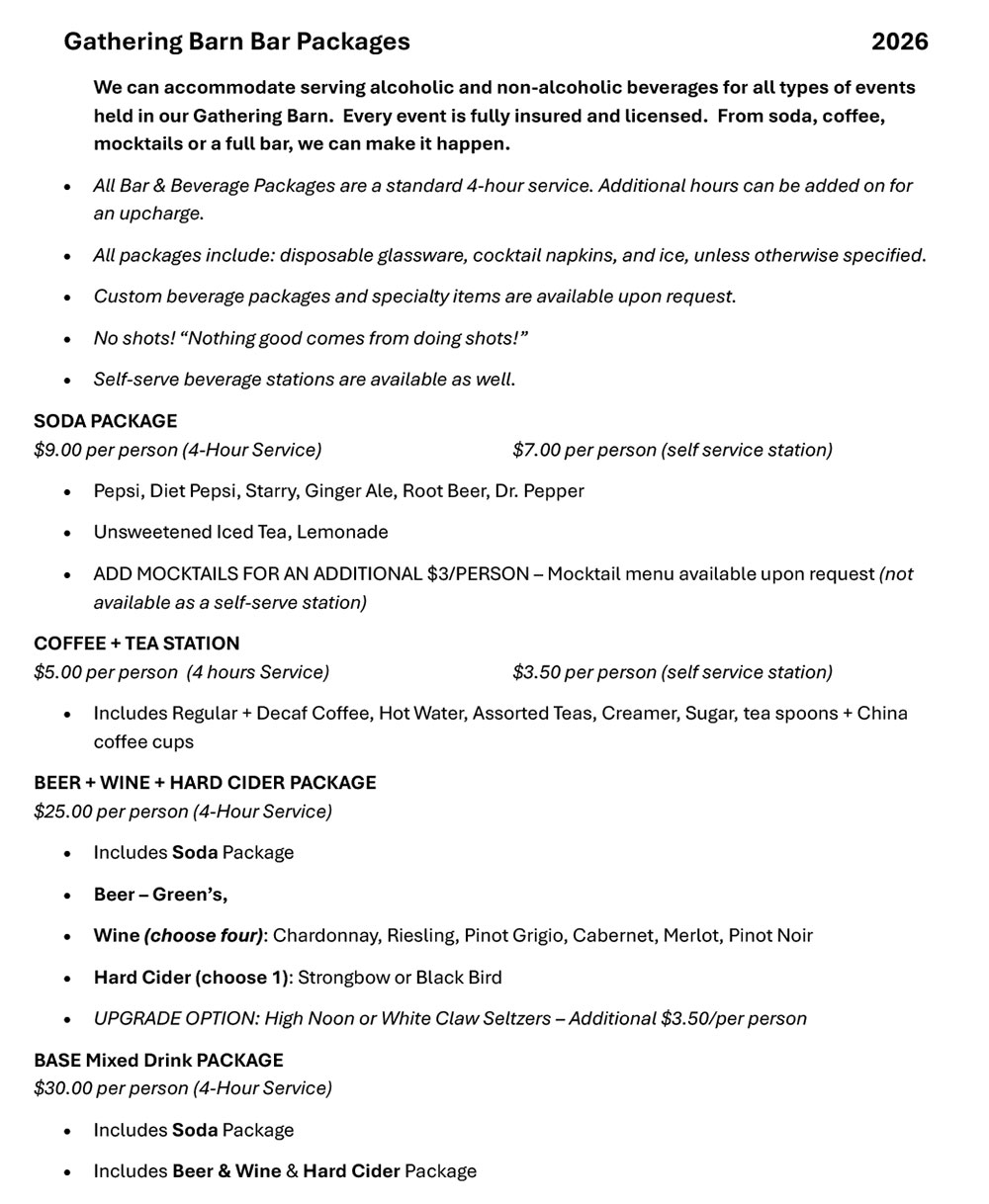Barn Menu PDF Barn Bar PDF Service Fees PDF