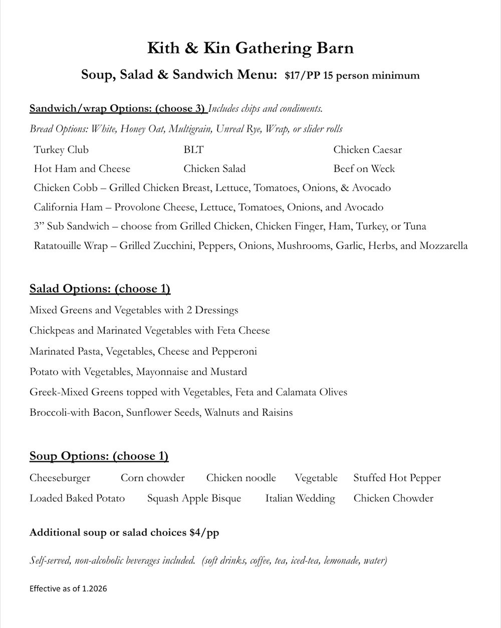 Whether you're planning a cozy get-together or a meaningful milestone event, The Gathering Barn offers the perfect setting—right in town, with all the comfort and care Kith & Kin is known for. Fill out the inquiry form below to check availability or schedule a walk-through—we’d love to host your next special gathering.
